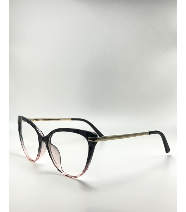 This is a gradient pink-to-black cat-eye optical lens that emphasizes a "soft, sweet, and sophisticated feel." Its core design features a pink-to-black gradient acetate frame with gold metal accents: the frame transitions naturally from light pink to deep black, creating a harmonious blend of sweetness and composure; the classic cat-eye upward curve flatters facial proportions (slimming the jawline and softening the cheekbones), while the gold metal accents add delicate details, preventing the design from being monotonous yet understated; the lenses are customizable for nearsightedness, farsightedness, non-prescription, and blue light protection, making it not only a practical vision aid for daily office work and study but also a "no-makeup wonder"—it minimizes facial fatigue while naturally enhancing a sophisticated and gentle look, suitable for commuting, dates, and other diverse daily scenarios.